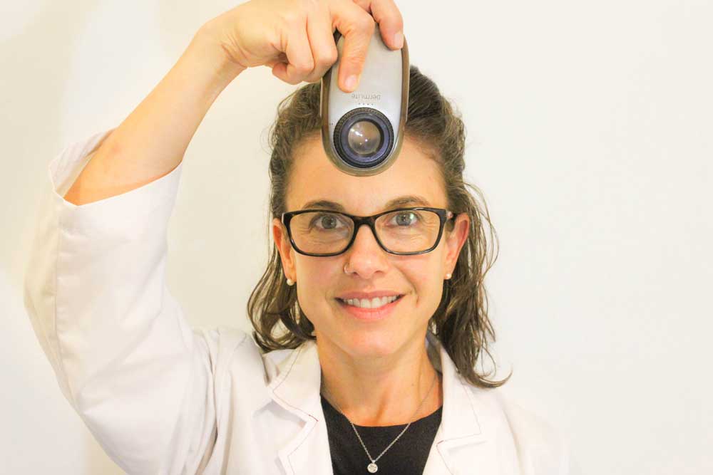 A la hora de hacer el examen físico, el dermatoscopio se vuelve una herramienta fundamental que me otorga mucha información que el ojo humano no es capaz de ver por sí solo, por eso me gusta decir que el dermatoscopio es mi tercer ojo. Así, mi ojo izquierdo, mi mano derecha y mi dermatoscopio se vuelven uno para brindarme la anatomía necesaria que me permitirá ver la piel amplificada.
